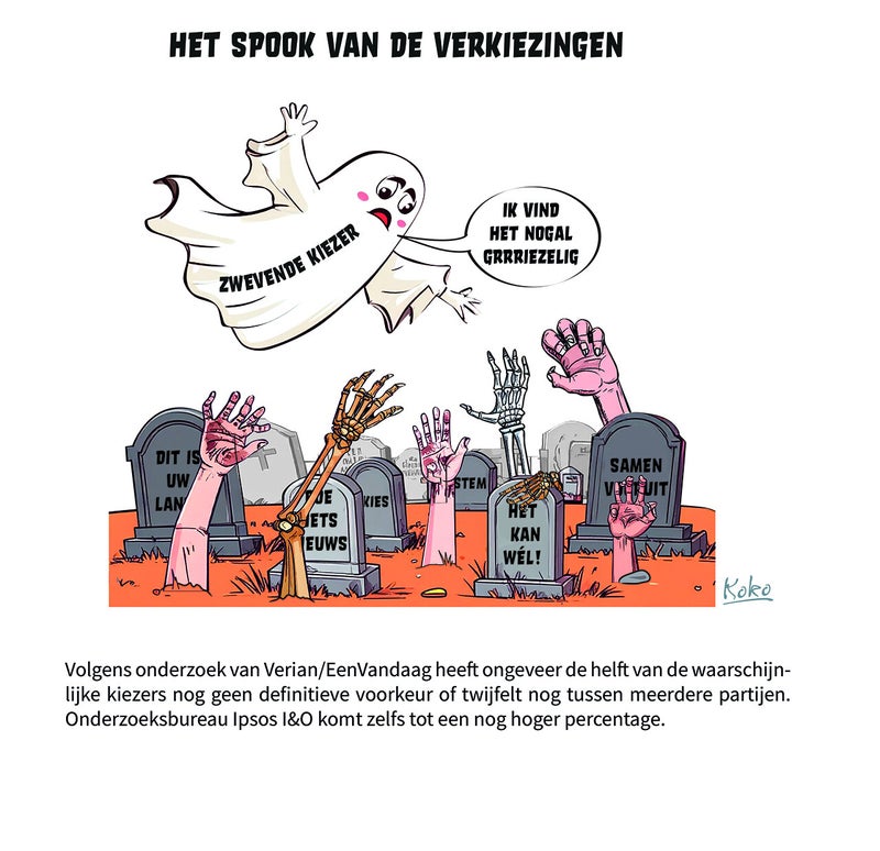 Zie jij de verkiezingen dichterbij komen en weet je ook nog niet voor welke partij je stemmen wil? Dan ben je een zwevende kiezer, en heb ik over jou een cartoon gemaakt! Ga naar de pagina met al mijn cartoons, en kijk of je jezelf herkent :-)