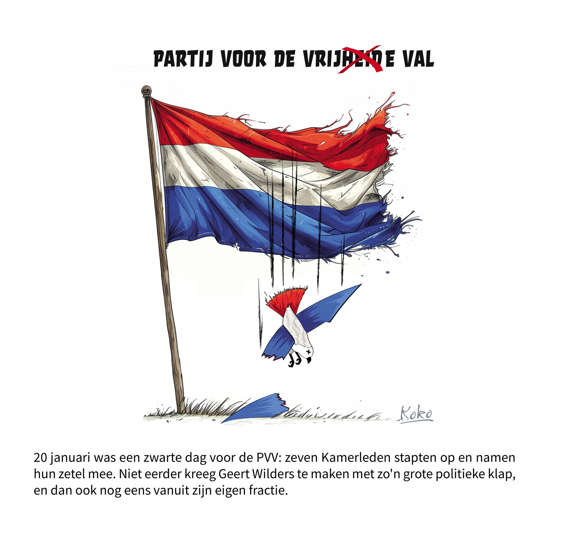 Als je op een cartoon klikt, wordt deze groter afgebeeld. De tekst onderin is het nieuwsbericht dat de aanleiding was voor de cartoon.