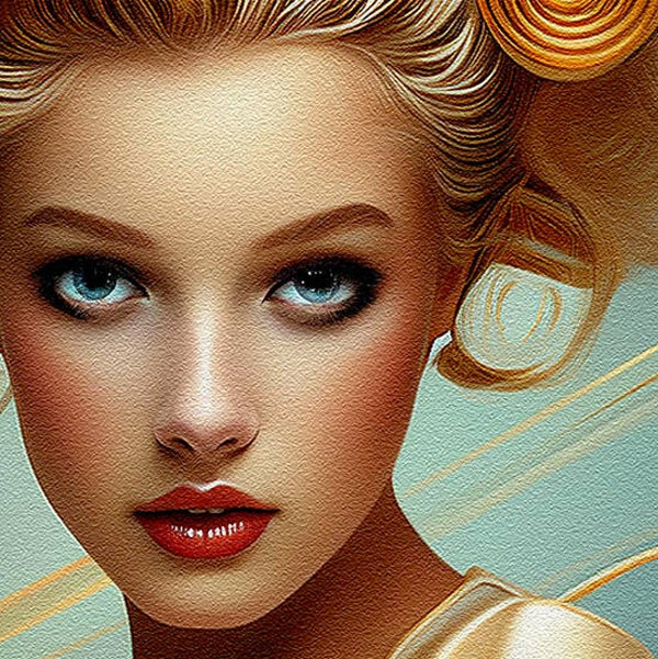 Zij is volgens A.I. het betoverende midden tussen tijdloze glamour en sensualiteit. Met haar opgestoken lokken als krullen van goud en een uitstraling die doet denken aan de iconen van weleer, doet ze haar naam eer aan: Ambriosa, het voedsel van de goden dat hen onsterfelijk maakt.